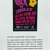 Our first big project was the branding and artwork for Rock on Crawley (ROC) 2021, in partnership with Brighton Youth Centres' Bfest 2021. We helped young people design a winning logo for Crawley's 75th anniversary, created a range of funky T-shirts for ROC 2022, and put together a bold, eye-catching advertising campaign to promote the festival.